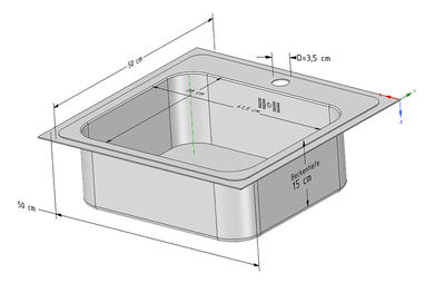 - 1 x 50x50 cm 1 Becken Spülbecken mit 35mm Spülen loch reversibel