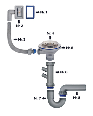 - 1 x Ablaufgarnitur mit Spülmaschinenanschluss