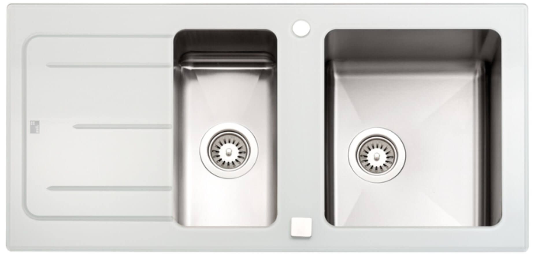 Küchenspüle Edelstahl / Glasablage Perlweiss 1,5 Becken