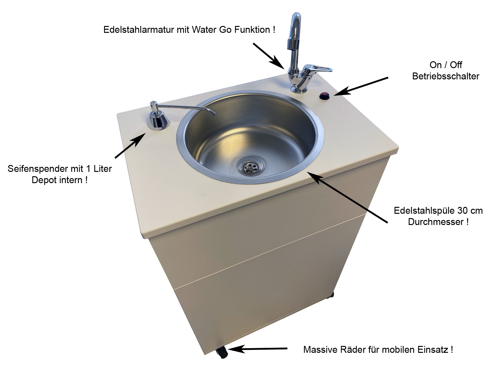 Auch als Übergang zur richtigen Spüle bietet unser Mobiles Handwaschbecken eine gute alternative.