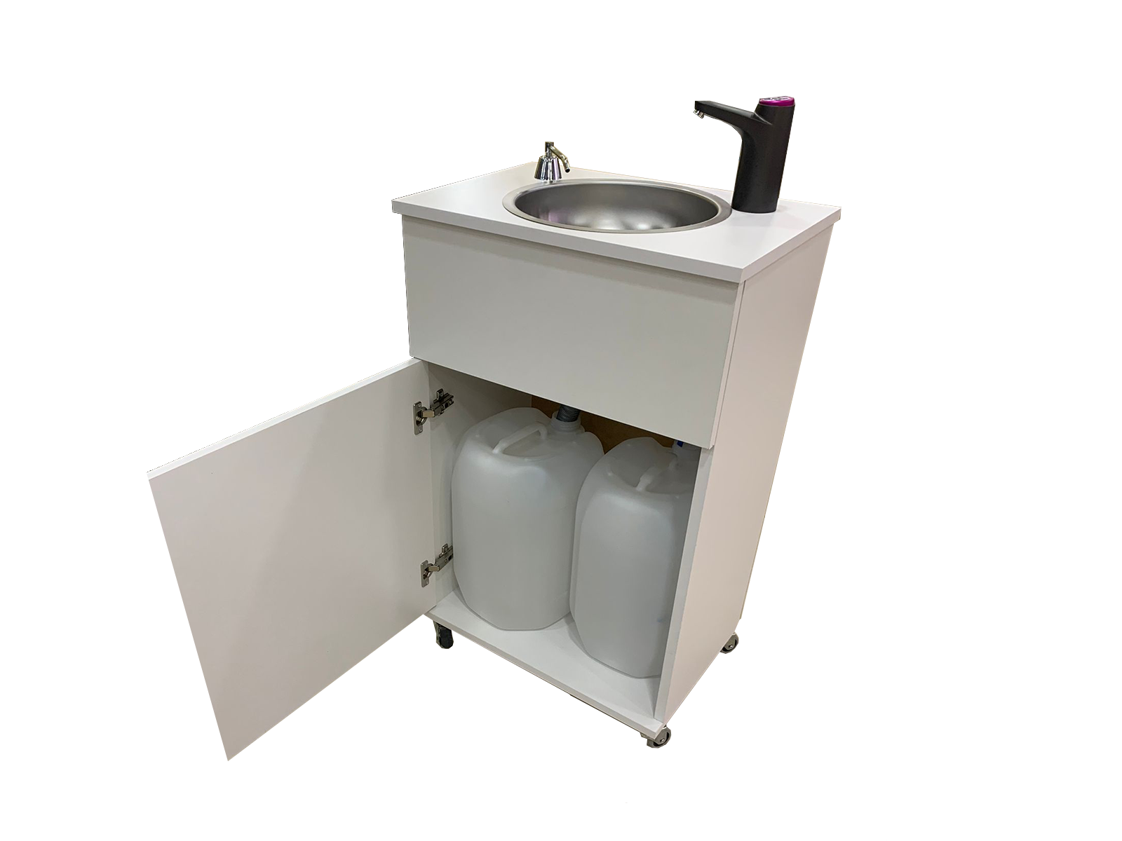 Mobiler Handwaschbecken mit Seıfenspender und batteriebetriebener Wasserhahn Model BigWhite