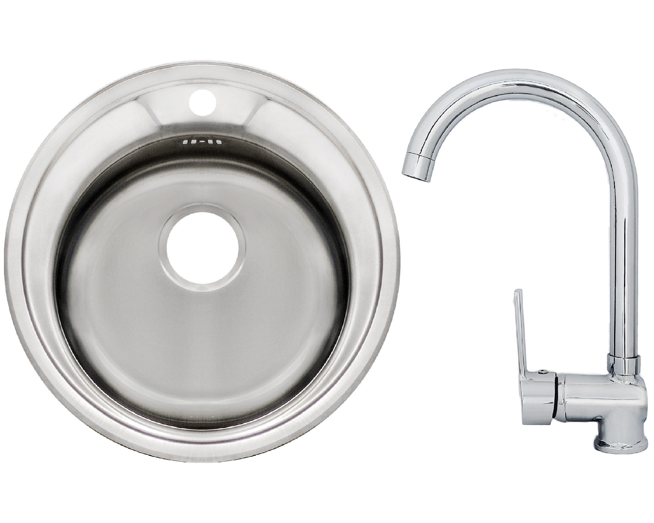 Edelstahl Rundspüle K48 & Ruby Armatur