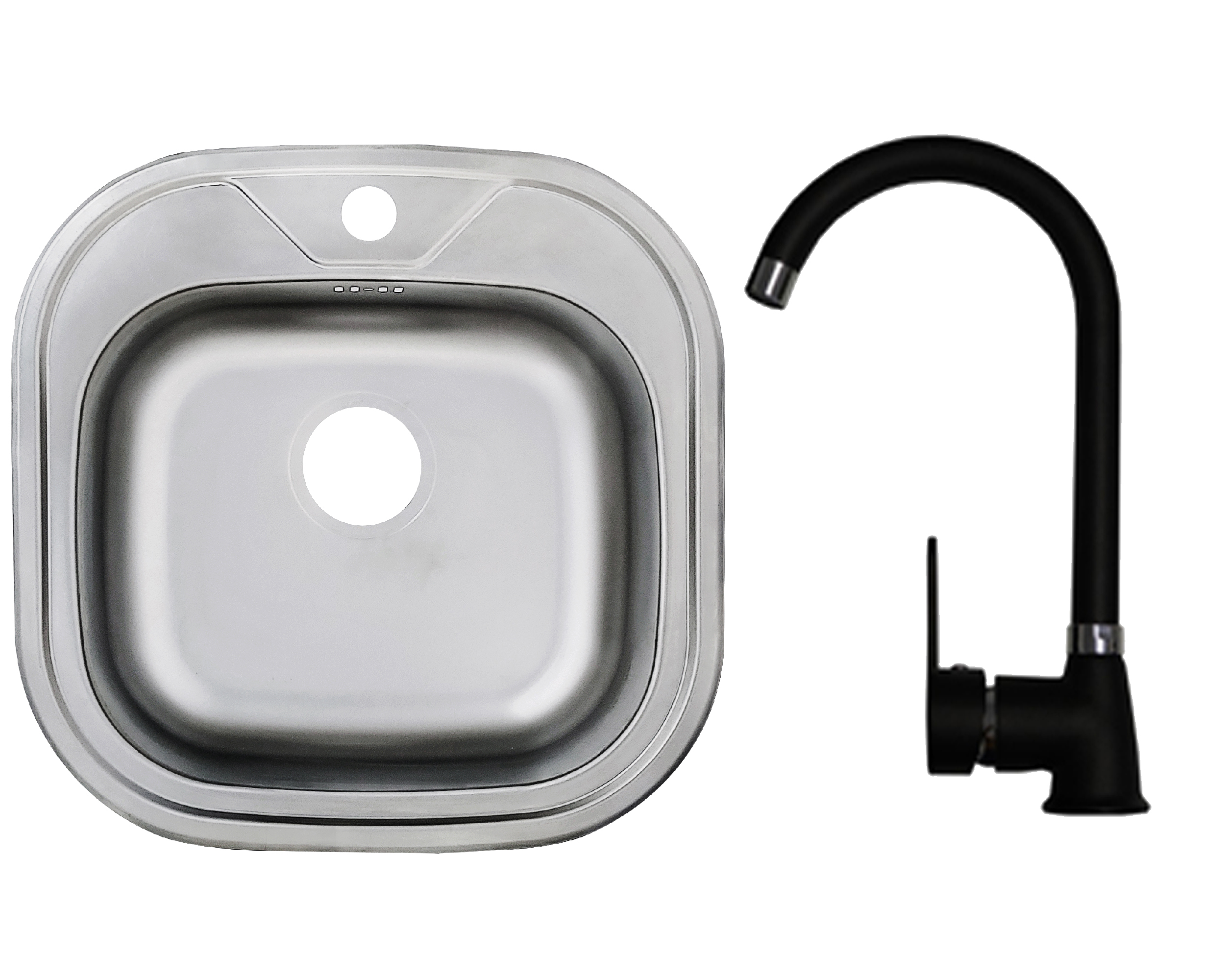 Keton Edelstahl Einbauspüle 48 x 48 Becken & Blacky Armatur Farbe schwarz