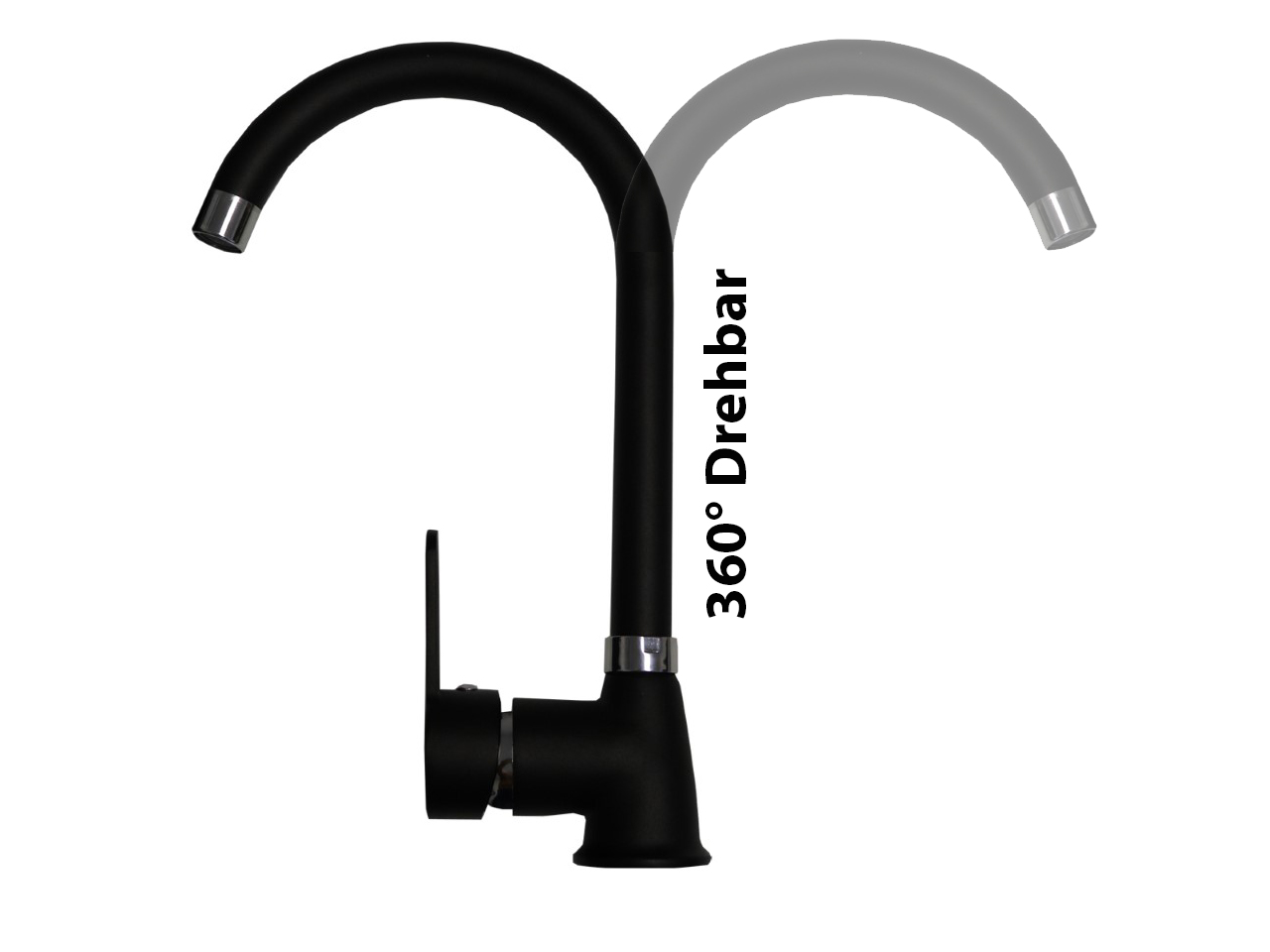 - Dazu kommt eine hochwertige schwenkbare Küchenarmatur mit edler Beschichtung oder verchromt. Der Körper besteht aus solidem Messing und zum Anschluss sind Flexi Schläuche sowie Installationsmaterial im Lieferumfang enthalten. Die Modelbezeichnung ist Blacky.