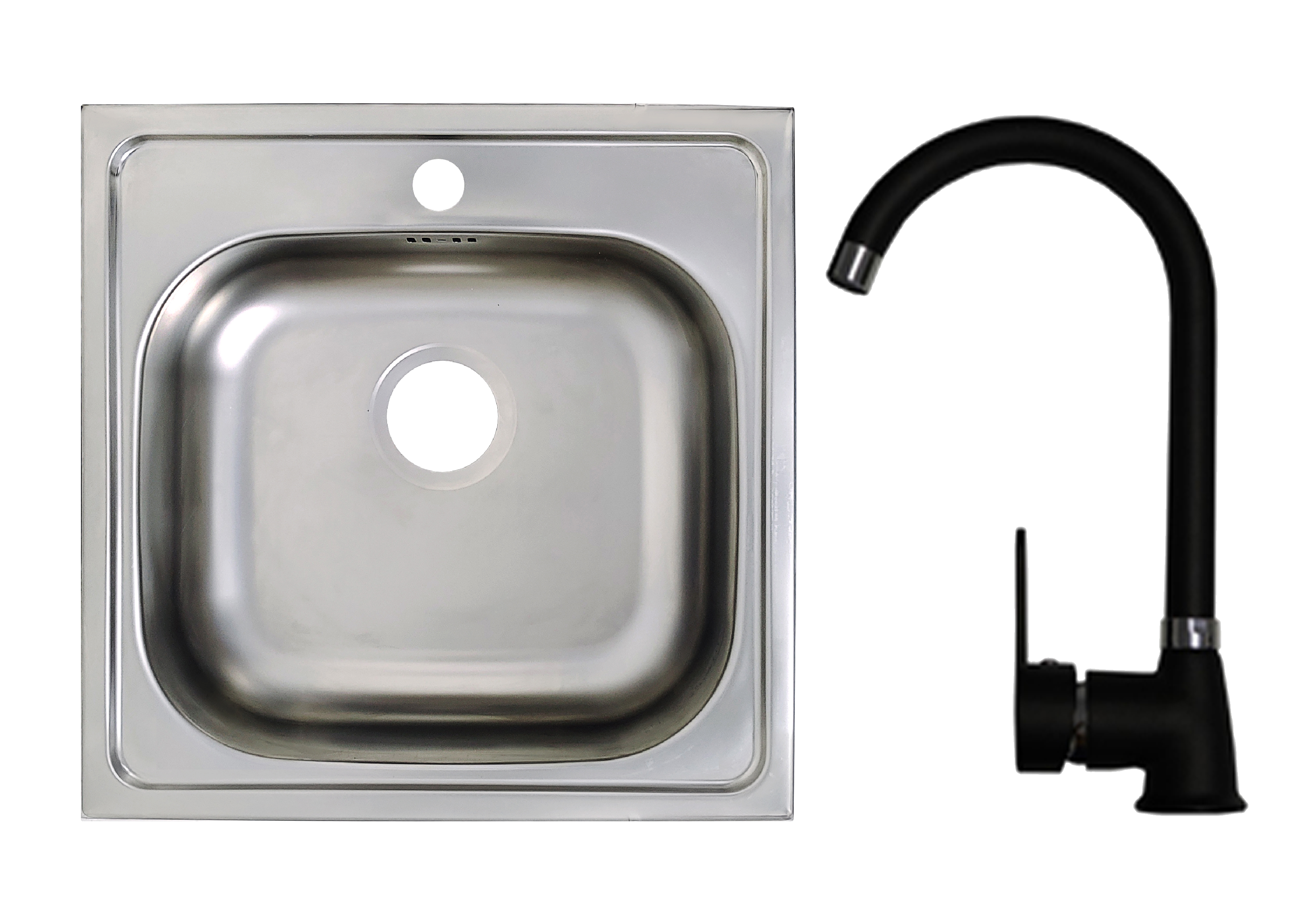 Keton Edelstahl Eckige Spüle 50x50cm & Blacky Armatur Farbe schwarz